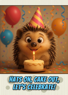 Happy Birthday Hedgehog with Party Hat and Birthday Cake