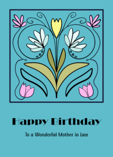 Happy Birthday Mother in Law Art Nouveau Flower Floral Botanical Retro