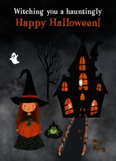 Halloween Witch with Haunted House