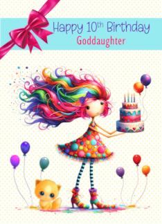 Goddaughter 10th Birthday Colorful Girl and Balloons
