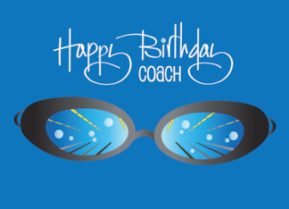 Hand Lettered Birthday for Swim Coach with Black Goggles and Bubbles