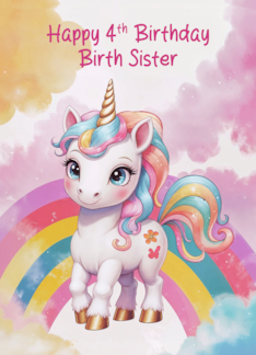 Birth Sister's 4th Birthday Rainbow Unicorn