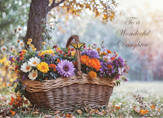 Daughter Happy Birthday Flowers in a Basket Country Custom