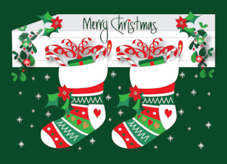 Hand Lettered Christmas From Both of Us Two Stuffed Holiday Stockings