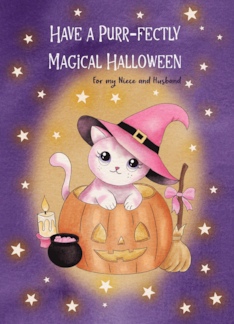 Halloween Cute Pink Cat in Pumpkin for Niece and Husband