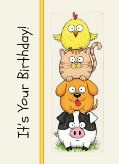 For Kids Happy Birthday Funny Stack of Dog Cat Piggy and a Chicken
