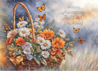 Wedding Anniversary Personalized with Names Pretty Fowers Butterflies