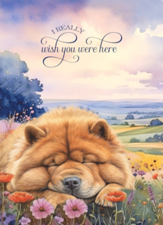 Missing You Chow Chow Dog in a Field of Wildflowers