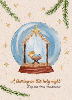Religious Christmas Nativity Scene in Snow Globe Great Grandchildren