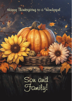 Son and Family Thanksgiving with Flowers Pumpkins Fall Foliage Custom
