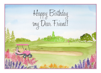Happy Birthday Dear Friend Pink Golf Cart on Course