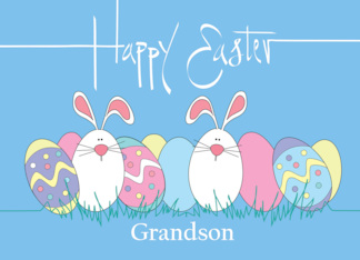 Hand Lettered Easter Decorated Egg Line White Bunnies for Grandson