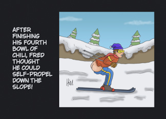 Humorous Blank Inside With Man On Skis Trying To Propel Himself