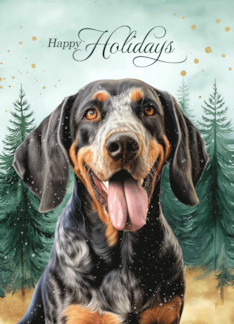 Happy Holidays Bluetick Coonhound Dog Woodland Forest