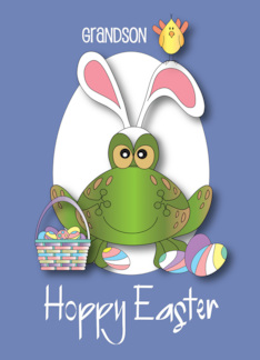 Hand Lettered Grandson Hoppy Easter Spotted Frog Bunny Ears and Eggs