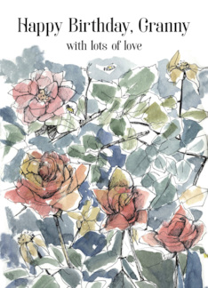 Happy Birthday Granny Pink Roses Watercolor Flowers