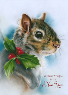 New Year Joy Winter Squirrel with Holly Wildlife Art