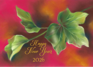 Happy New Year 2026 Green Ivy Leaves on Red Custom Year