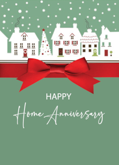 Home Anniversary from Realtor to Client Winter Houses with Red Bow