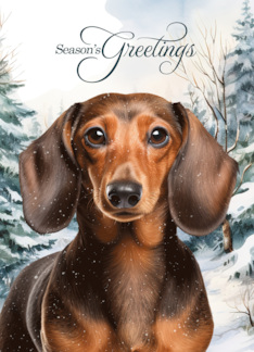 Season's Greetings Dachshund Dog Snowy Woodland Forest