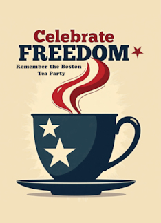 Boston Tea Party Day Patriotic Freedom with Stars and Teacup Steam