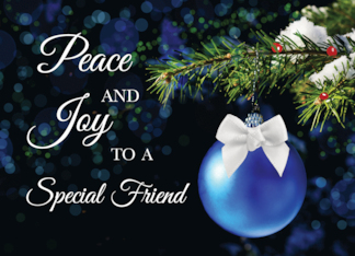 Friend Bright Joyful Holiday Blue Ornament on Winter Bough