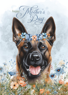 Mother's Day Belgian Malinois Dog Wildflower Botanicals Blue
