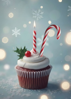 Christmas Eve Birthday with Cupcake Striped Candle and Candy Cane Cute