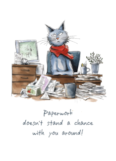 Woman Volunteer Thank You Funny Cat at Desk with Papers