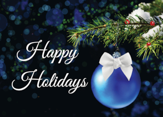 Happy Holidays Bright Joyful Blue Ornament on Bough