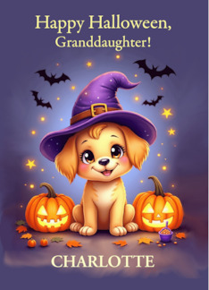 Granddaughter Halloween Customizable Name Cute Puppy in Witch Hat