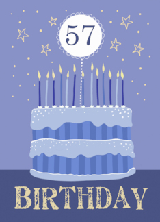 57th Birthday Cake Male Candles and Stars Distressed Text