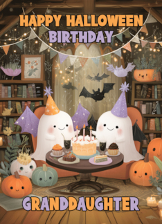 Granddaughter Happy Halloween Birthday with Ghosts Bats and Pumpkins