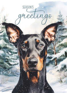 Season's Greetings Doberman Pinscher Dog Snowy Winter Pines