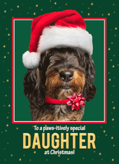 Merry Christmas Daughter Bernedoodle Dog in Santa Hat on Green