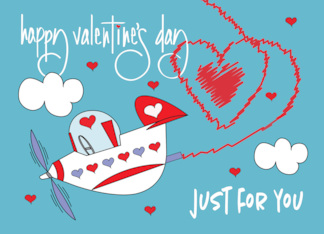Hand Lettered Valentine Plane for Kids Red Exhaust in Shape of Heart