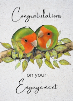 Engagement Congratulations with Lovebirds on Leafy Branch