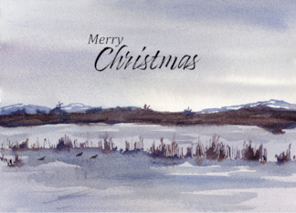 Merry Christmas Winter Lake Mountains Waterfowl