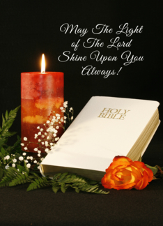 Religious Greeting Card with Candle, Bible & Rose-Light Of The Lord
