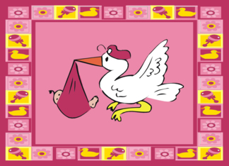 Stork Baby Girl Birth Announcement
