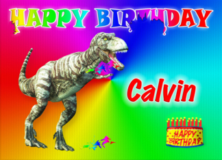 Calvin, if I were you I think I'd run, here comes a Tyrannosaur to join the fun. He will eat this card and your cake too, and if he is still hungry he might eat you. Happy Birthday!
