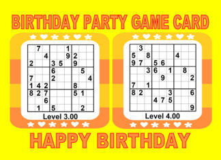Level 3+4 Birthday Party Game Card Sudoku