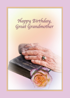 Great Grandmother Birthday Card with Aged Hands and Bible