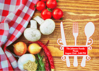 Picnic Invitation Red Checkered Tablecloth and Veggies
