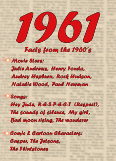 1961 FUN FACTS - BIRTHDAY newspaper print nostaligia year of birth