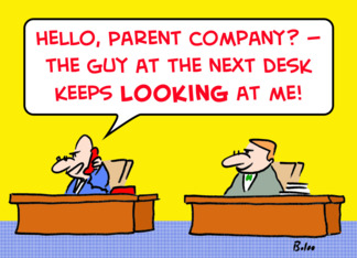 Parent, company, next, desk, looking