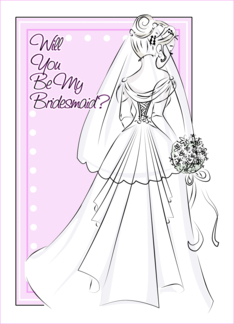 Will You Be My Bridesmaid? Bride's Wedding Gown ink Drawing