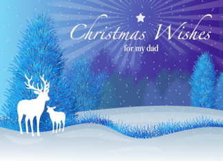 Christmas for Dad with Buck and Fawn on Snowy Night in Woods