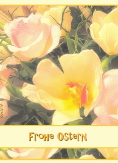 Frohe Ostern german happy easter yellow tulips pink roses