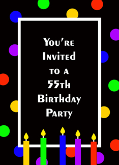 55th Birthday Party Invitation Card -- Bright Polka Dots and Candles